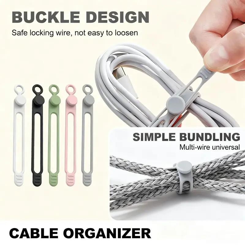 Ya sea en casa, en la oficina o en movimiento, estos organizadores de cables de silicona ofrecen una forma simple, reutilizable y eficiente de mantener tus cables y otros objetos ordenados y libres de enredos.