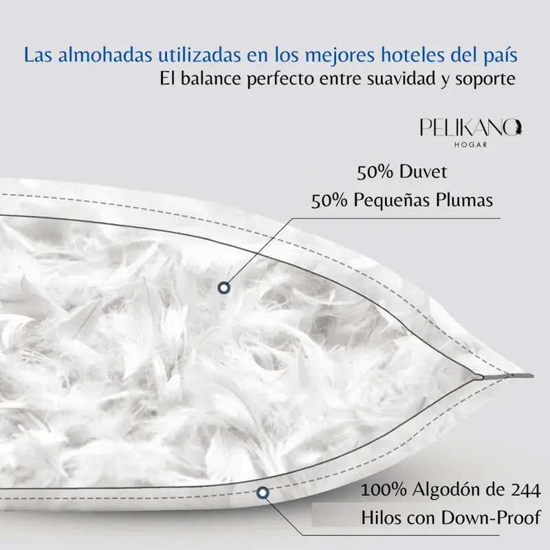 Confeccionadas con tela de 100% algodón de 244 hilos, con tecnología down proof que evita la salida de plumas para un descanso sin interrupciones.
