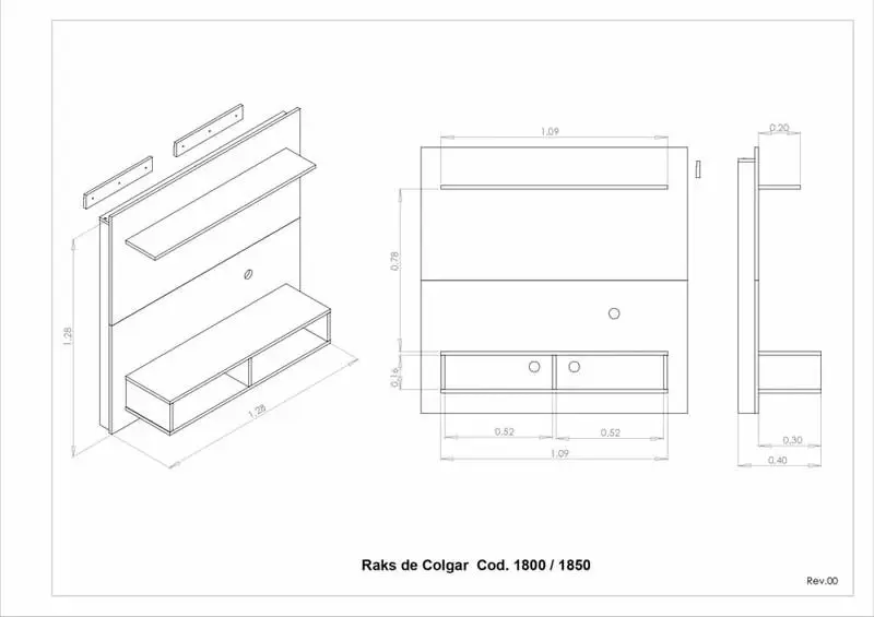 Panel colgante para TV.Este producto sirve para TV hasta 52 pulgadas.Estante flotante arriba y abajo, con hueco con la medida justa para los accesorios.Perforación para cables .Hueco de atras de 8 cm libre para los cables.Mecanismo de Fácil colgado de panel.No incluye soporte para TV.