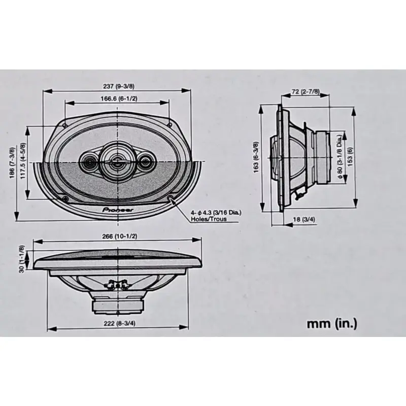 Parlante Pioneer TS-A6968S 6×9 pulgadas 3 vías 450 W | Audio potente y nítido en tu auto