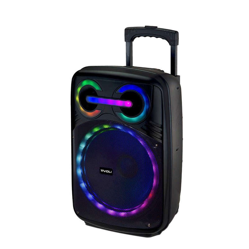 Parlante Portátil Bluetooth Tivoli 7000w Micrófono Radio FM PBT-115.Disfrutá de un sonido potente y vibrante con este parlante portátil, diseñado para llevar la música a otro nivel estés donde estés.Con conectividad BT y función TWS, sincronizá dos parlantes para un audio estéreo más envolvente. Su radio FM, batería recargable y luces LED aseguran entretenimiento sin límites.Gracias a su empuñadura de transporte y ruedas, lleva tu música donde quieras con comodidad y estilo.Especificaciones:* Marca: Tivoli.* Tipo: Parlante.* Medidas: 61cm x 40cm x 30cm.* Color: Negro.* Ranura para Trípode.* Entrada para cable auxiliar.* Incluye: 1 parlante + micrófono + cables + manual + garantía.