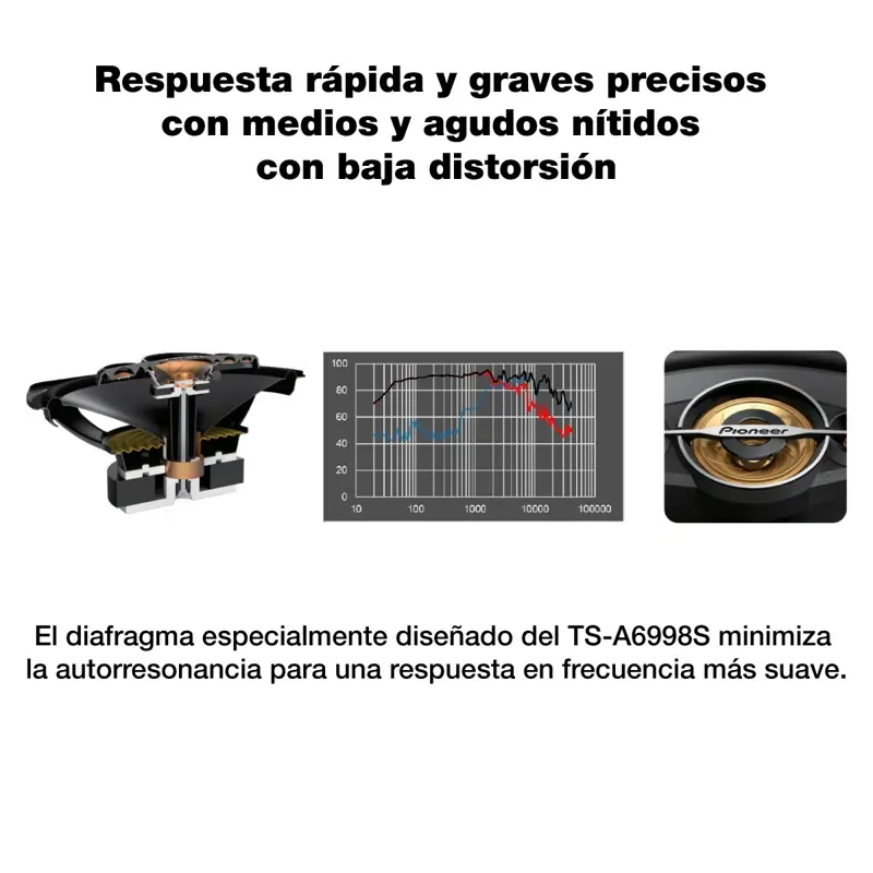 El Pioneer TS-A6998S es un parlante coaxial de 5 vías de 6x9 pulgadas con una potencia máxima de 750 W y una potencia nominal de 150 W. Ofrece una sensibilidad de 93 dB y una amplia respuesta de frecuencia de 29 Hz a 31 kHz. Ideal para quienes buscan un sonido potente y detallado en su vehículo.> Tamaño: 6×9 profundo> Potencia máxima: 750 W> Potencia nominal: 150 W> Reproducción tipo: 5 vías coaxial> Sensibilidad (1w/1m): 93 dB> Respuesta de frecuencia: 29Hz- 31kHz (-20dB)