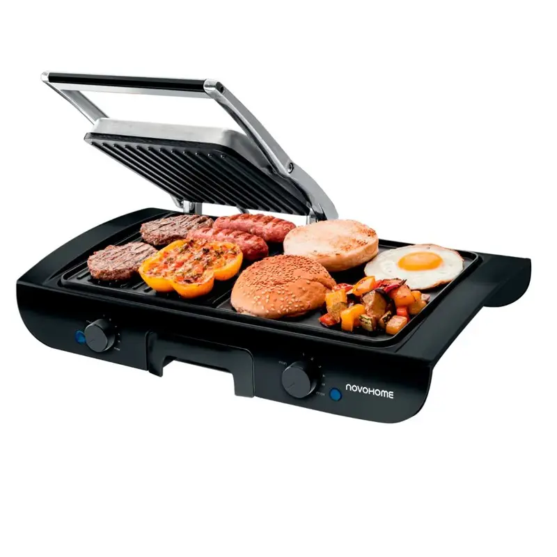 NOVOHOME PARRILLA GRILL CON TAPA PRENSA Y PLANCHETA BIFERA 1500W