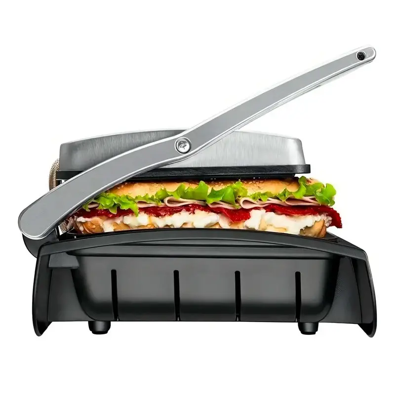 Descubre nuestro grill con tapa prensa: tu nuevo aliado para cocinar carnes, sándwiches y vegetales en minutos, sin añadir grasa y con el punto exacto que te gusta. Su ingeniería permite asar por ambos lados al mismo tiempo, sellando el sabor y acelerando la cocción. La superficie antiadherente garantiza su limpieza en un abrir y cerrar de ojos. Menos complicaciones, más sabor en cada comida.