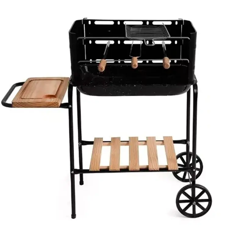La Parrilla móvil Mor Califórnia cuenta con una mesa auxiliar incluida, ideal para tener a mano todos los utensilios y alimentos necesarios durante la preparación de tus asados. A pesar de no contar con altura ajustable del emparrillado, tapa, compartimento para carbón ni ladrillos refractarios, su diseño y funcionalidad te garantizan una cocción perfecta y uniforme de tus alimentos.