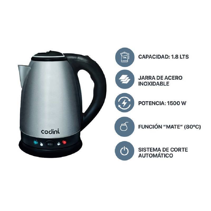 Transforma tu rutina diaria con la Pava Eléctrica Codini y disfruta de la simplicidad en cada uso. Experimenta la calidad y el diseño que ofrece, y permite que cada taza de bebida caliente sea un momento especial