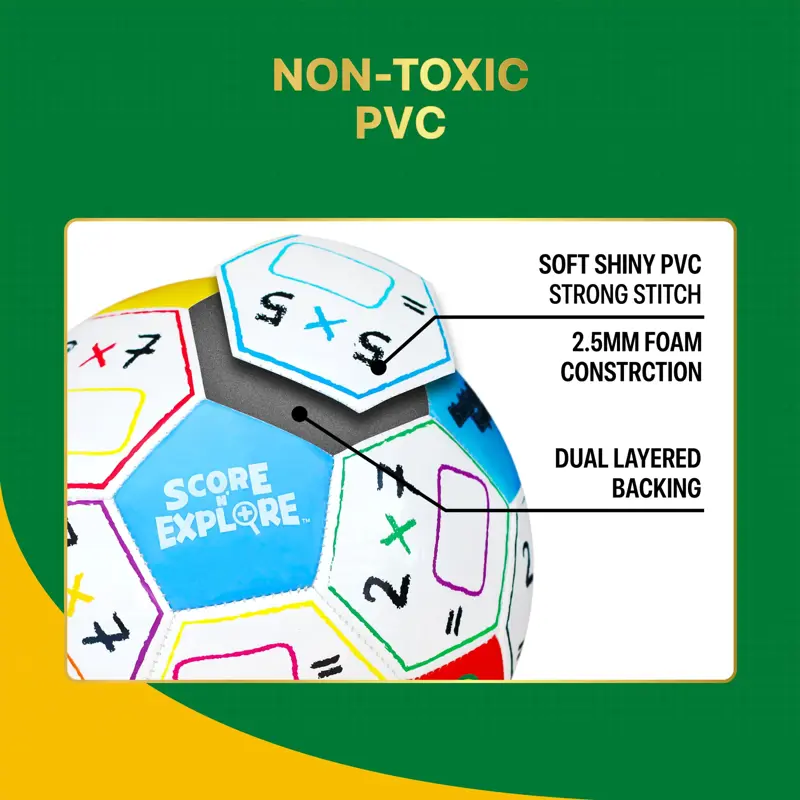 Esta pelota destaca por sus ilustraciones únicas con temática de multiplicación impresas en sus paneles, convirtiendo cada patada en una oportunidad para el aprendizaje creativo. Anima a los niños a interactuar con números y hechos de multiplicación de manera lúdica e inspiradora, siendo una herramienta excelente para padres y educadores que buscan combinar la actividad física con el desarrollo cognitivo.