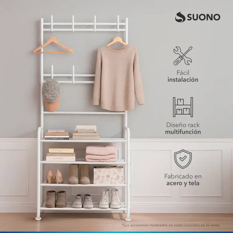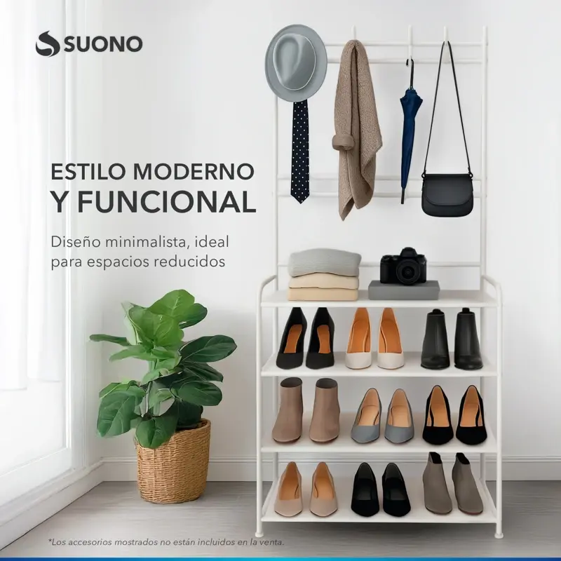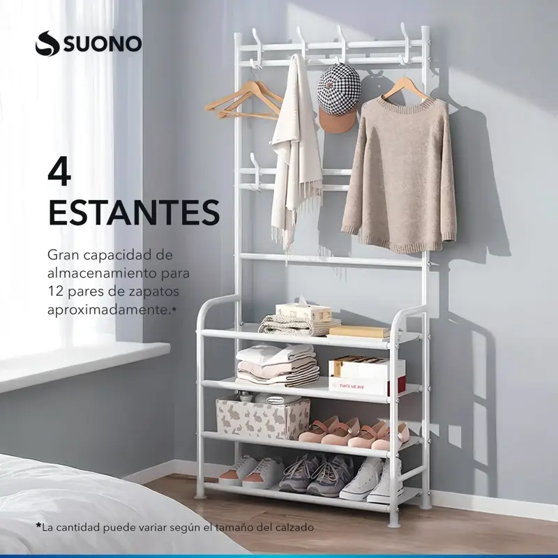 - Diseño 2 en 1: Funciona como tender para ropa y organizador de zapatos.
