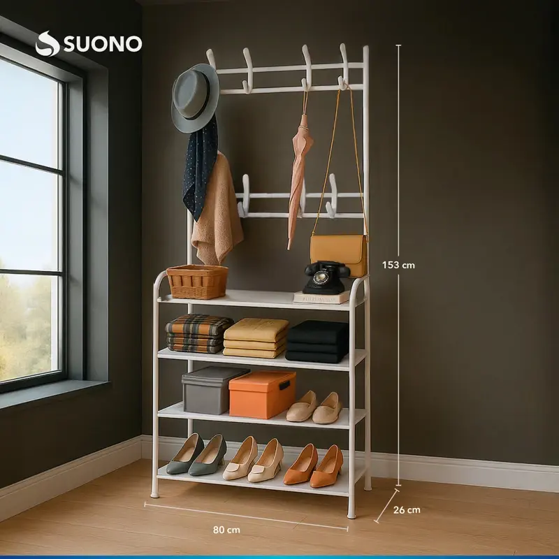 SKU: HOG0281BLA Tender Organizador de Zapatos Suono – Práctico, Metálico y Multifunción Optimizá el espacio en tu hogar con el tender organizador metálico Suono, ideal tanto para colgar ropa como para organizar calzado. Su diseño versátil y resistente lo convierte en un aliado imprescindible para mantener el orden sin ocupar demasiado lugar. Características principales: