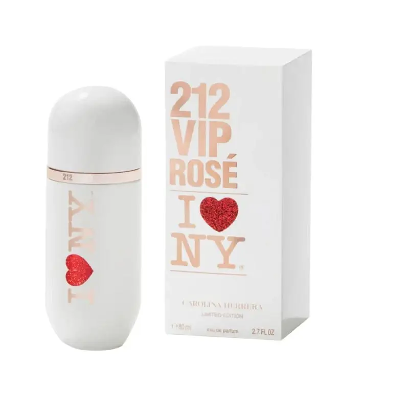 Eau de parfum en aerosol Carolina Herrera 212 Vip Rose I Love Ny Edition para mujer, 2.7 onzas- NOTAS CLAVE:- Parte superior: rosa champán, pimienta rosa- Centro: flor de melocotonero, ramo de rosas- Base: madera de reina, almizcle