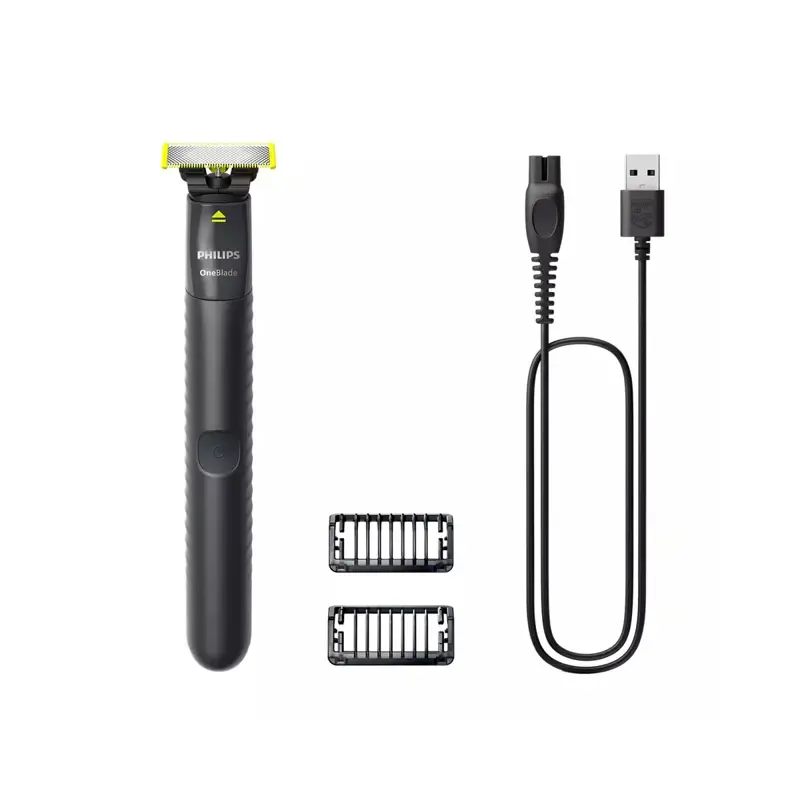 OneBladeRostroPhilips OneBlade es un nuevo y revolucionario moldeador híbrido que puede recortar, afeitar y crear líneas y perfiles limpios en vellos de cualquier longitud. Olvídese de tener que seguir múltiples pasos y utilizar muchas herramientas. OneBlade lo hace todo.Recorta, perfila y afeita cualquier longitud de velloDiseñada para cortar el vello, no la pielRecorta, perfila y afeitaPara cualquier longitud de velloUna cuchilla original2 peines-guía recortadores desmontables para barba incipiente (1 y 3 mm)Recargable, uso en seco y húmedo?Tecnología OneBlade exclusivaPhilips OneBlade cuenta con una tecnología revolucionaria diseñada para el afeitado facial. Puede afeitar vellos de cualquier longitud. La combinación de su sistema de protección dual, un revestimiento deslizante y puntas redondeadas hace que el afeitado sea más fácil y cómodo. Su tecnología de afeitado cuenta con un cortador de movimiento rápido (12 000 veces por minuto) que es eficaz incluso en vellos más largos.Recortá hacia abajoRecorta tu barba incipiente a una longitud uniforme con uno de los 2 peines-guía para barba incluidos. De 1 mm para un recorte matutino y de 3 mm para un recorte ajustado.PerfilaCreá perfiles precisos con la cuchilla de doble cara. Podes afeitarte en cualquier dirección para tener mejor visibilidad y ver cada vello que recorta. ¡Alineá tu estilo en segundos!