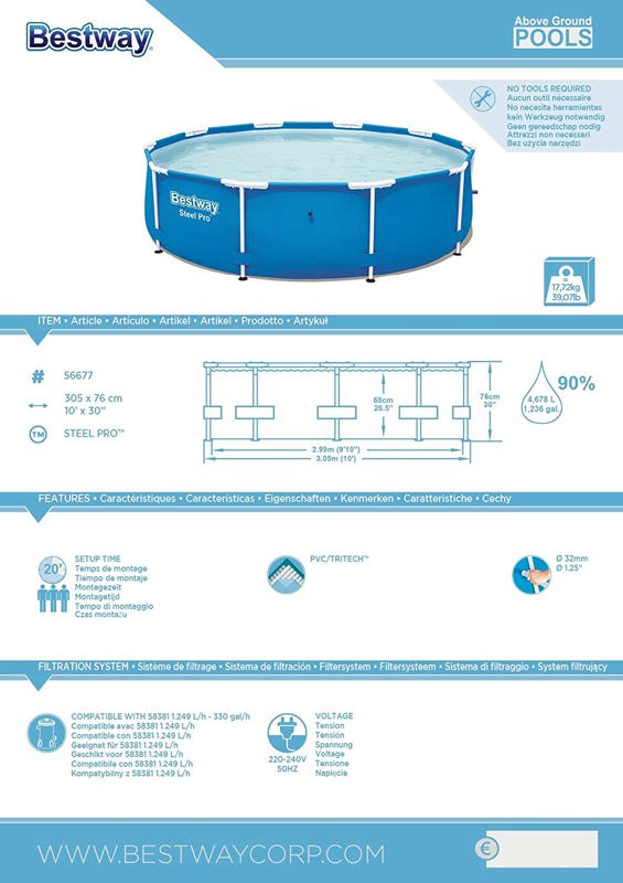Pileta Estructural Redonda Bestway 4678 litros 3.05m