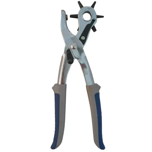 La pinza punzonadora sacabocado ADEGSO Para Cuero Cartón Plástico es una herramienta imprescindible para quienes buscan precisión y comodidad en su trabajo. Con un diseño ergonómico, su mango ofrece un agarre seguro que minimiza la fatiga durante su uso, lo que la convierte en la opción ideal tanto para profesionales como para aficionados.