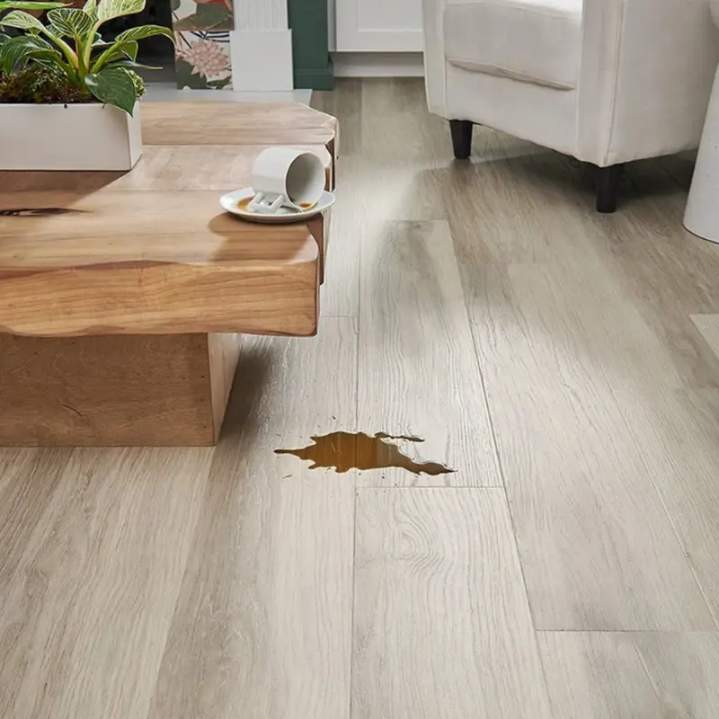 A diferencia de los suelos laminados tradicionales, son resistentes al agua soportando una exposición ante la humedad de hasta 240 hs = 10 días. No se hinchan, no se agrietan, no se deforman, ni pelan cuando se exponen al al agua.