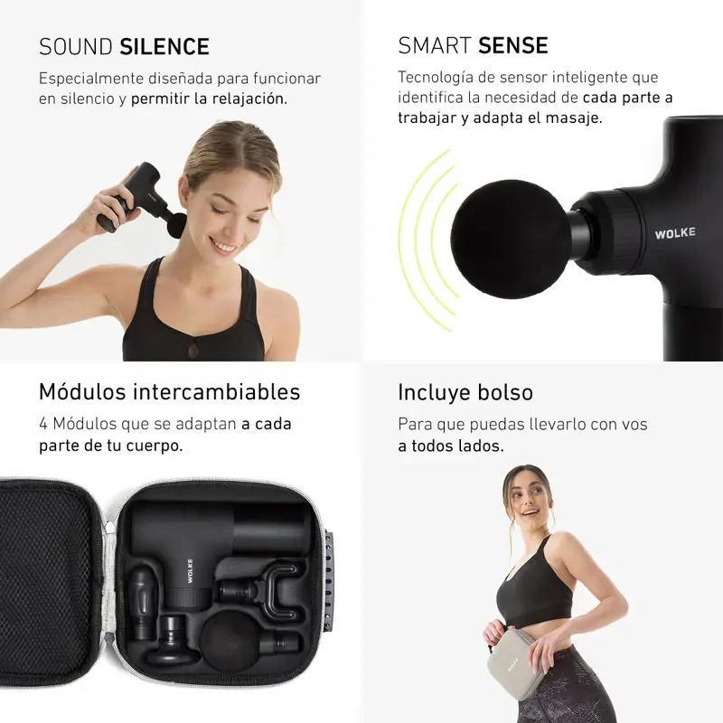 * SILENCIOSO con su tecnología SoundSilence™ patentada por Wolke logras ejercer el masaje de forma silenciosa, sin que nada te distraiga de una perfecta relajación.