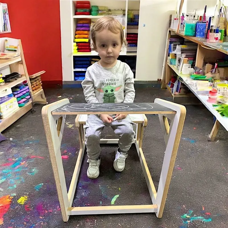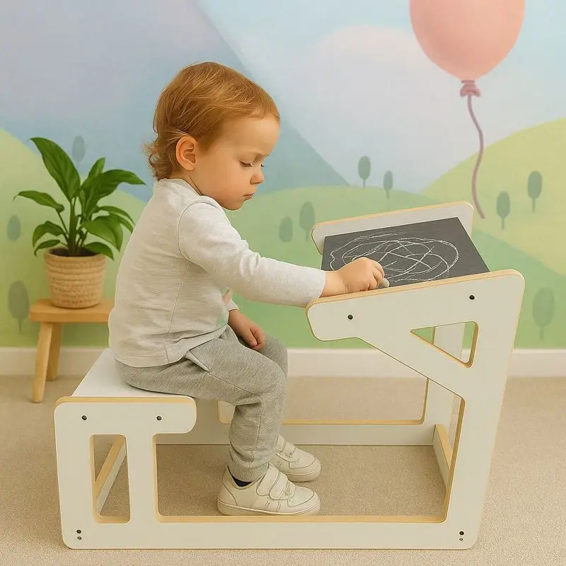 La Pizarra Infantil Mesa Pupitre de Dibujo Melamina con Silla de MJ MADERAS es el espacio ideal para estimular la creatividad de los más pequeños. Diseñada para niños a partir de 2 años, este pupitre combina la funcionalidad de una mesa de dibujo con la diversión de una pizarra borrable, garantizando horas de entretenimiento educativo.