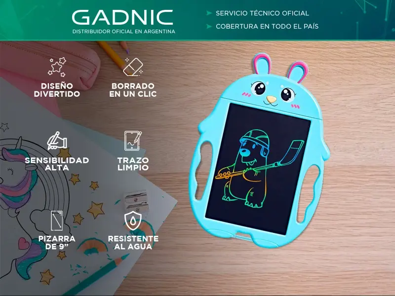 ¡Bienvenidos al mundo de la creatividad y la diversión! Si tienes un pequeño artista en casa que adora dibujar y crear, te presentamos la tableta gráfica ideal para niños. Diseñada pensando en los más pequeños, esta tableta no solo despierta su imaginación, sino que también es resistente al agua, para que puedan dar rienda suelta a su creatividad sin preocupaciones. Imagina un lienzo digital donde los animales cobran vida y los colores saltan del papel. Con esta tableta gráfica de diseño de animales, tus hijos podrán explorar su lado artístico mientras se divierten con sus personajes favoritos. Cada trazo se convierte en una aventura, permitiendo a los niños dar vida a sus propias historias y expresar su estilo único. Pero eso no es todo, esta tableta gráfica cuenta con un botón de borrado y un botón de bloqueo, que hacen que sea aún más fácil y cómodo de usar. El botón de borrado permite corregir rápidamente cualquier error sin tener que empezar de nuevo, mientras que el botón de bloqueo evita que los dibujos se borren accidentalmente, dándole a tus pequeños artistas la confianza y seguridad para crear sin límites. ¡Es hora de dar rienda suelta a la imaginación y la creatividad de tus hijos con la tableta gráfica resistente al agua de diseño de animales!