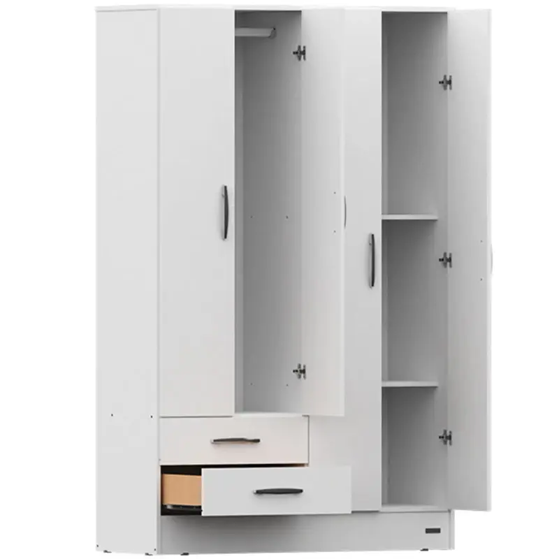 * Espacio interior de colgado con barral plástico más un espacio con 2 estantes. 2 cajones con correderas metálicas.
