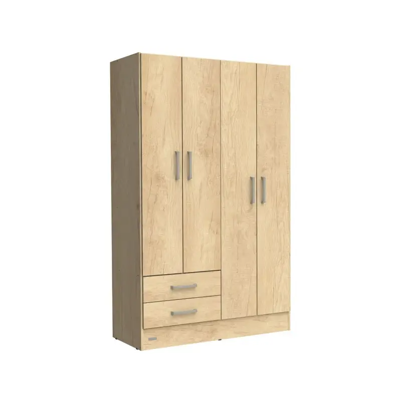 * Espacio interior de colgado con barral plástico más un espacio con 2 estantes. 2 cajones con correderas metálicas.