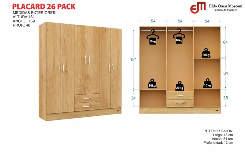 PLACARD 26 MOSCONI PACK ESPECIFICACIONES: