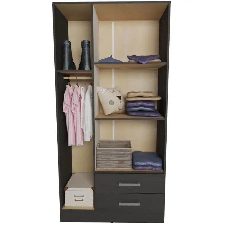 Este moderno y funcional placard de la reconocida marca Muebles Orlandi, modelo 3533, es ideal para mantener ordenado tu dormitorio. Con medidas de 91x184x47Cm, cuenta con 3 puertas, 2 cajones y 4 estantes, todo en melamina de color wengue de origen argentino. Las correderas metálicas aseguran un deslizamiento suave al abrir y cerrar las puertas, además de una garantía de 12 meses. ¡Ordena tus prendas y accesorios con estilo y calidad!