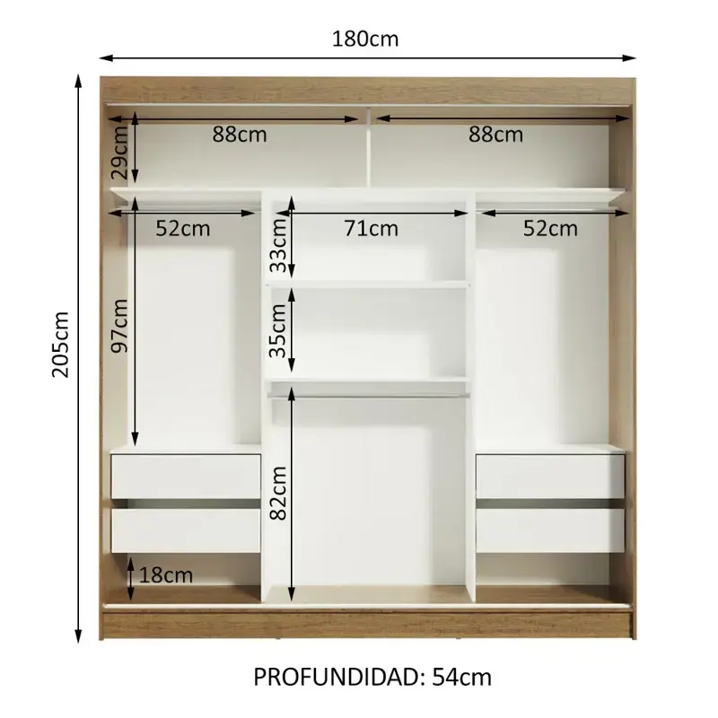 El Placard Reno de Madesa trae una combinación perfecta entre diseño moderno, gran distribución interna y materiales de calidad.