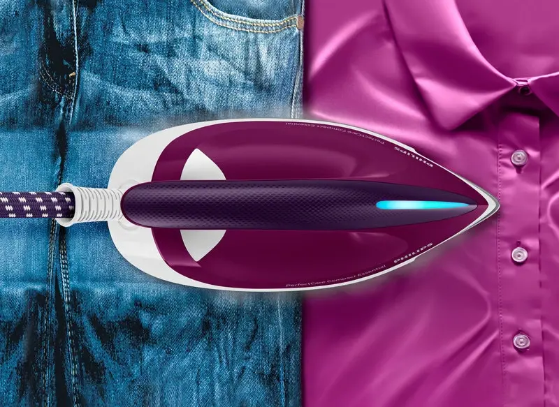 La suela SteamGlide se desliza con suavidad sobre los tejidos, es resistente a los rayones, antiadherente y fácil de limpiar, lo que asegura un rendimiento duradero y un planchado más cómodo. También cuenta con la función de planchado vertical, ideal para refrescar prendas colgadas y cortinas sin necesidad de tabla.