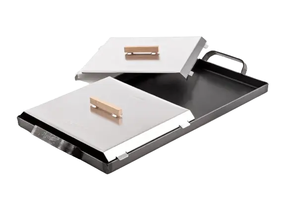 La tapa viene en dos partes para que puedas sectorizar tus cocciones y usarla alternativamente en media Planchetta o Planchetta completa. Por su diseño práctico y muy liviano podrás deslizarla de atrás hacia adelante muy fácilmente.