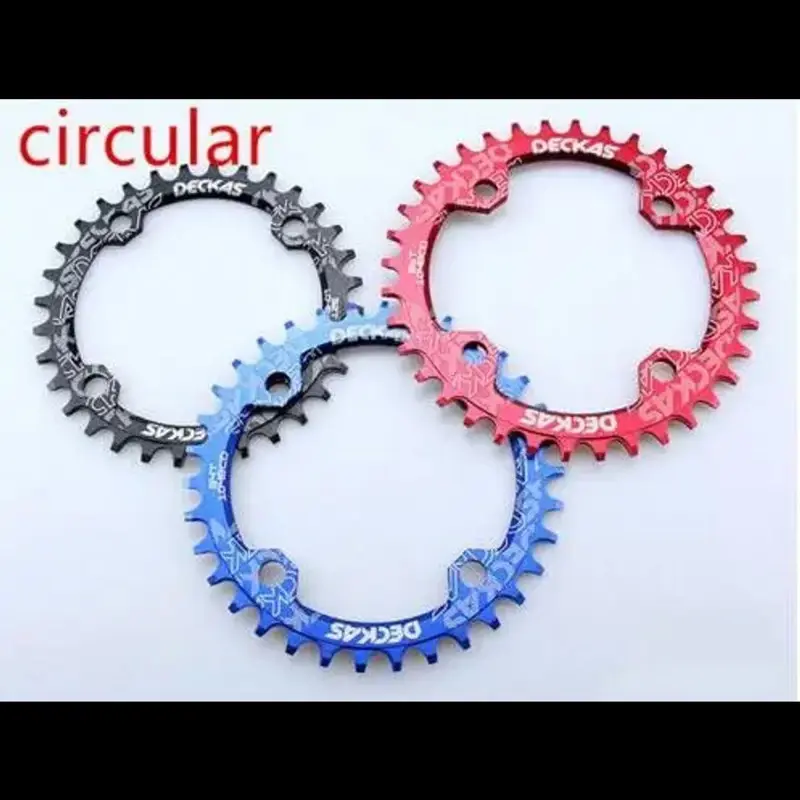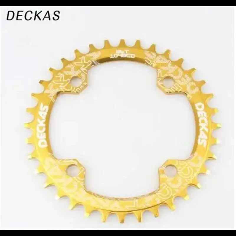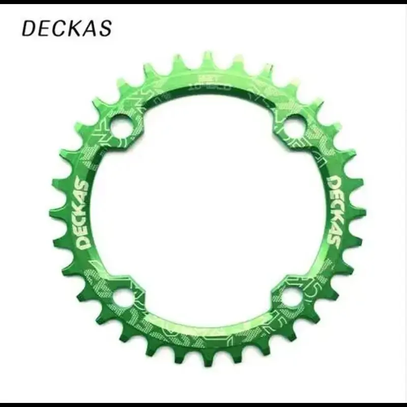 La rueda dentada DECKAS BCD104 está diseñada para bicicletas de montaña, fabricada en aluminio de alta calidad. Está disponible en tamaños de 32, 34, 36 y 38 dientes. Compatible con cadenas de 7 a 10 velocidades y cadenas SRAM de 11 velocidades, cuenta con un diseño de paso 104 BCD redondo. El peso varía de 41 a 83 gramos según el tamaño. Disponible en colores negro, rojo, azul, dorado, verde y morado. Procesada con máquinas CNC y acabado en oxidación anódica, esta rueda dentada minimiza la probabilidad de deslizamiento de la cadena y simplifica el sistema de velocidad, reduciendo peso innecesario en la bicicleta. Ideal para ciclistas que buscan mejorar el rendimiento y la eficiencia de su bicicleta de montaña.