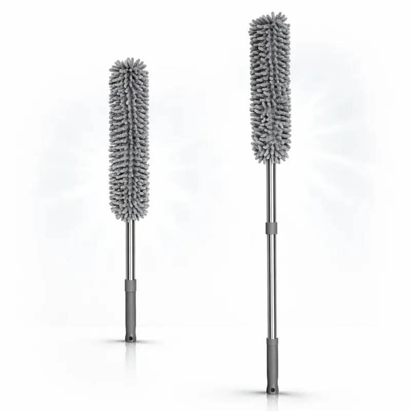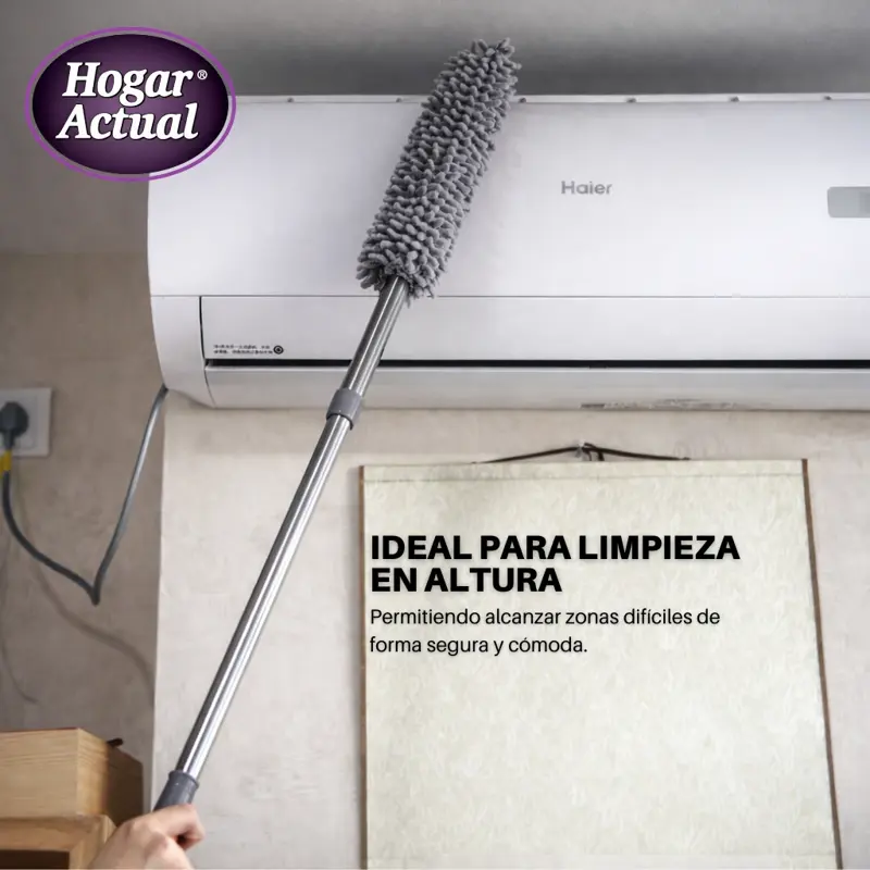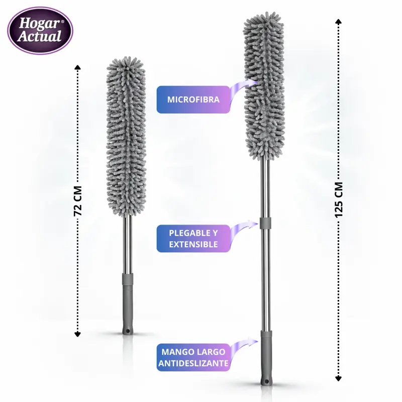 Mantén tus espacios impecables de forma rápida y sin esfuerzo con este plumero de microfibra extensible, diseñado para alcanzar y limpiar zonas difíciles con máxima comodidad y eficacia.