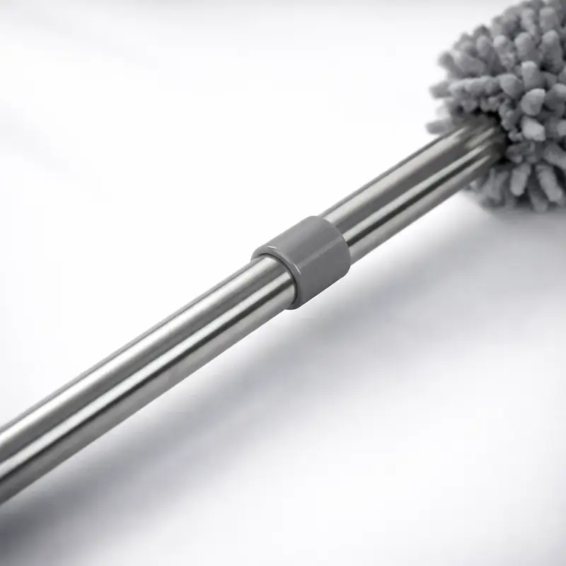 Su cabezal de microfibra ultra suave atrapa polvo, pelusa y suciedad sin rayar superficies delicadas, mientras que el mango telescópico de acero inoxidable permite ajustar la longitud según la necesidad, facilitando la limpieza en altura y en espacios reducidos.