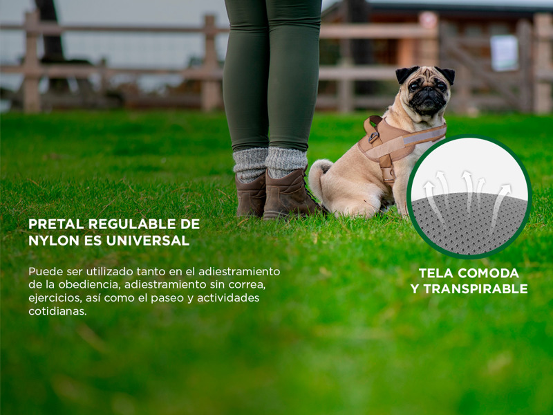 El pretal es resistente al moho, hongos, insectos, la putrefacción y productos químicos, es muy simple en el uso, lo puede regular en su perro con la ayuda de una mano, sobre todo es resistente a la humedad y se puede lavar. El pretal regulable de nylon es universal y puede ser utilizado tanto en el adiestramiento de la obediencia, adiestramiento sin correa, ejercicios, así como el paseo y actividades cotidianas. El arnés para adiestramiento canino hecho de materiales de alta calidad seguros para perros, sobre todo le durará mucho tiempo manteniendo su apariencia y durabilidad.