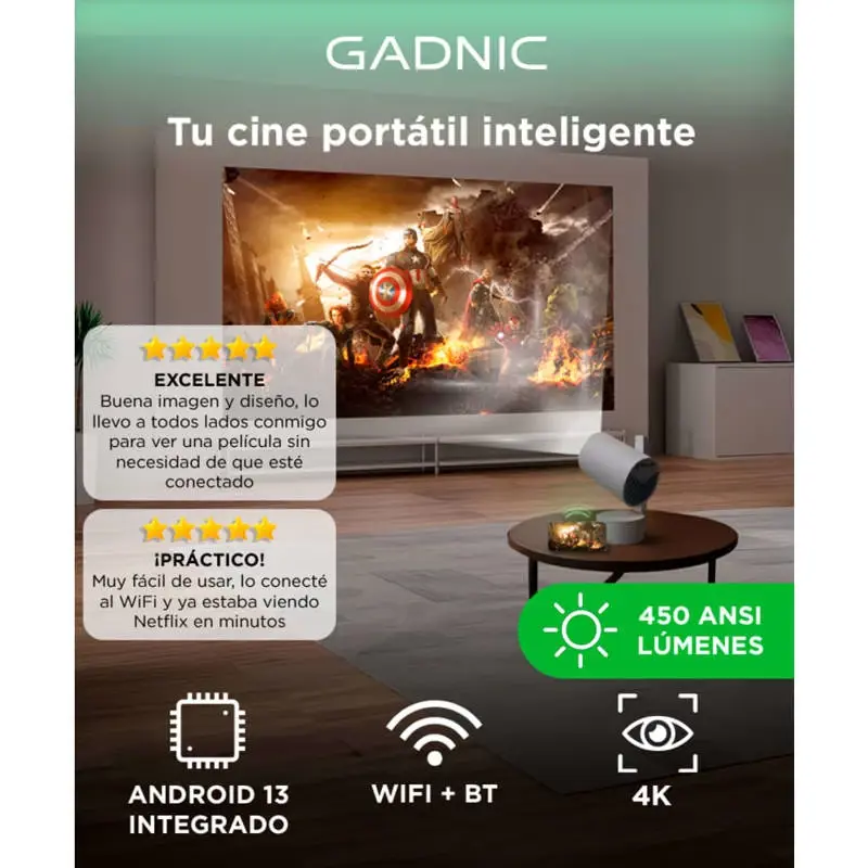 Proyectá con una resolución 4K, garantizando colores vivos y detalles precisos. Con sus 450 ANSI lúmenes y un contraste 1000:1, obtenés imágenes brillantes y definidas incluso en ambientes semi-iluminados.