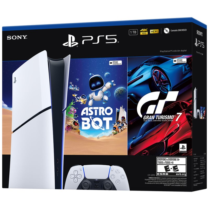 - El paquete incluye una consola PS5, ASTRO BOT, ganador del premio Juego del año 2024, y el simulador de conducción definitivo, Gran Turismo 7, a un precio increible.