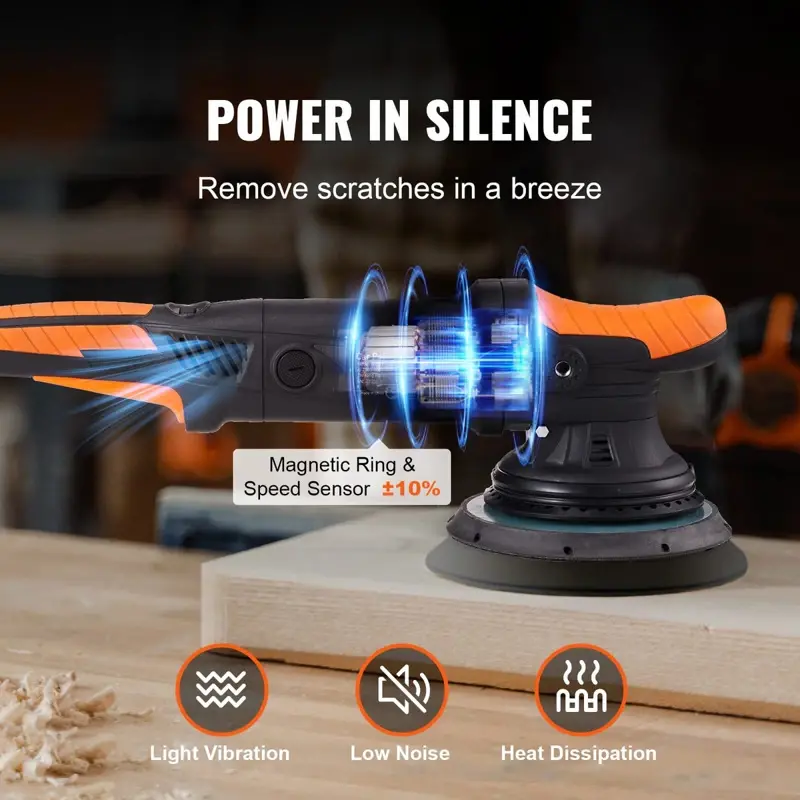 La velocidad está de tu lado: toma el control de tu pulidor de coche con el control de velocidad de 6 niveles Con una velocidad rotativa de --0RPM, tiene la flexibilidad de ajustar la máquina pulidora de acuerdo con sus necesidades. Ya sea la baja velocidad para una depilación y pulido suaves, velocidad media para un pulido y limpieza minuciosos, o alta velocidad para eliminar defectos de pintura y oxidación difíciles, este pulidor orbital lo tiene cubierto.