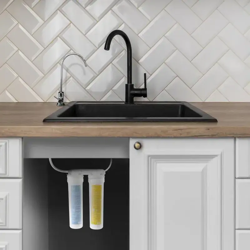 Su sistema de doble filtrado ofrece agua más pura y segura directamente desde tu cocina, mejorando su sabor y olor.