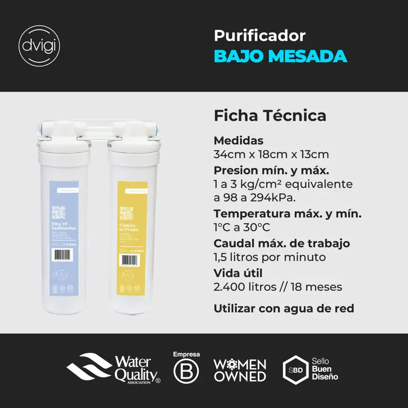 Filtro Purificador de Agua BAJO MESADA Dvigi