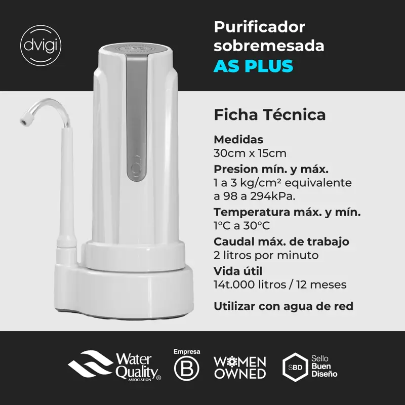 Combo Especial: Purificador de Agua AS PLUS con Repuesto Extra-