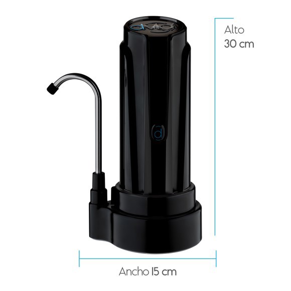 El modelo AQUA cuenta con una unidad filtrante de alta capacidad que rinde hasta 14.000 litros o aproximadamente 18 meses de uso, dependiendo de la calidad del agua.
