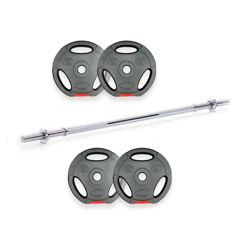 BARRA HIERRO MACIZA DE 1.20 Mts. + 10 Kg en Discos Plásticos rellenos de 28 mm (Cantidad de Artículos 5 ) set-150+10==> set 4 discos 2,5 + barra 1,2 mts "Ranbak" es una empresa Argentina líder en el país en equipos para fitness, somos distribuidores oficiales directos ofreciendo una amplia variedad y stock de artículos Ranbak.