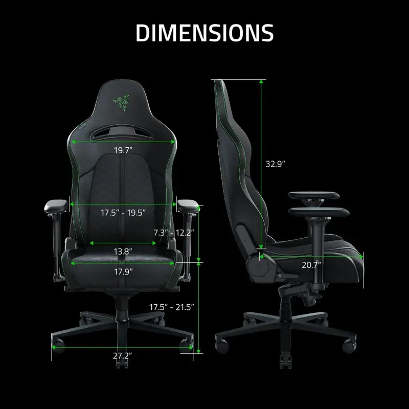 Características especiales: Arco lumbar incorporado, Comodidad para juegos durante todo el día, Reclinación ajustable de 152 grados, Densidad optimizada del cojín, Cuero sintético ecológico con doble textura