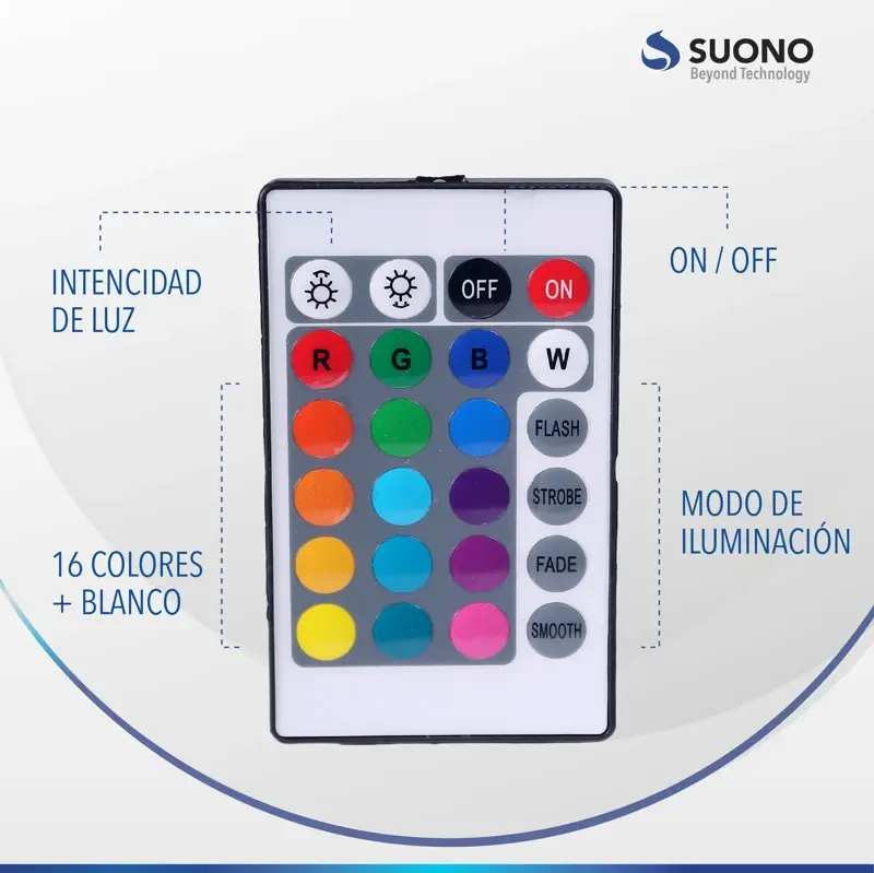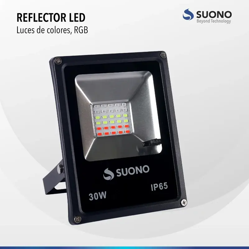 REFLECTOR LED RGB 30W ALTA LUMINOSIDAD APTO EXTERIORES CON CONTROL REMOTOSKU: ILU0008CARACTERISTICAS:• Vida útil: 50.000 hs.• Corriente de Entrada: 220V• Color de la carcasa: Negro• Potencia: 30 Watts• Color de la Luz: 16 Colores RGB- Con control remoto• Apto para Exteriores- NO ES SUMERGIBLE• Angulo de apertura 120°• Medidas: 13,5 x 17,5 x 3,5 cmIP65