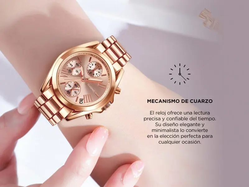 Su diseño elegante y minimalista lo convierte en la elección perfecta para cualquier ocasión, ya sea una reunión de negocios, una cena romántica o un evento especial. La correa y la esfera están cuidadosamente diseñadas para complementar la estética femenina y realzar la belleza natural.