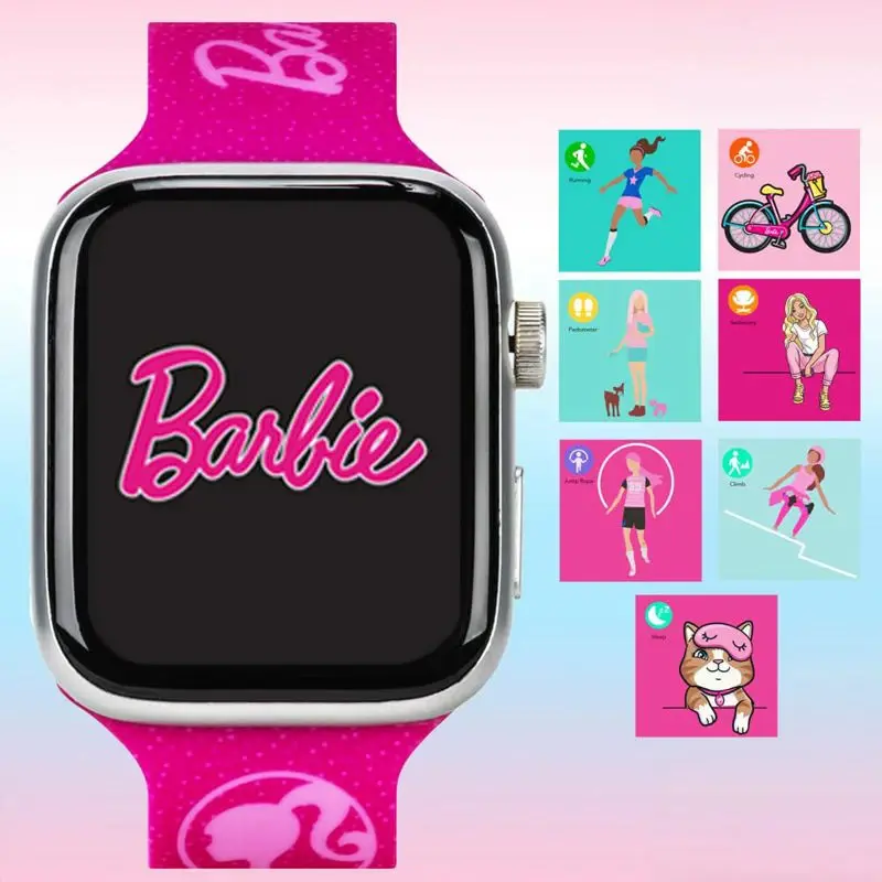 Reloj inteligente Barbie con pantalla táctil para niñas con correa de silicona con purpurina rosa y esferas de reloj personalizables, cámara digital y rastreador de actividad- Pantalla táctil interactiva: pantalla táctil fácil de usar por la que los niños pequeños pueden navegar con facilidad.- Esferas de reloj personalizables: seis divertidas esferas de reloj con temática de Barbie para mantener a tu hijo ocupado y entretenido.- Funciones de seguimiento de la actividad: incluye un podómetro para fomentar un estilo de vida saludable mediante la monitorización de la actividad.- Conectividad ampliada: se conecta a un smartphone para controlar la cámara del teléfono de forma remota y mucho más; es compatible con iOS 10.0 y superior y Android 5.0 y superior.- Duradero y apto para niños: fabricado con una correa de silicona con purpurina que es a la vez atractiva y resistente, diseñada para el juego diario.