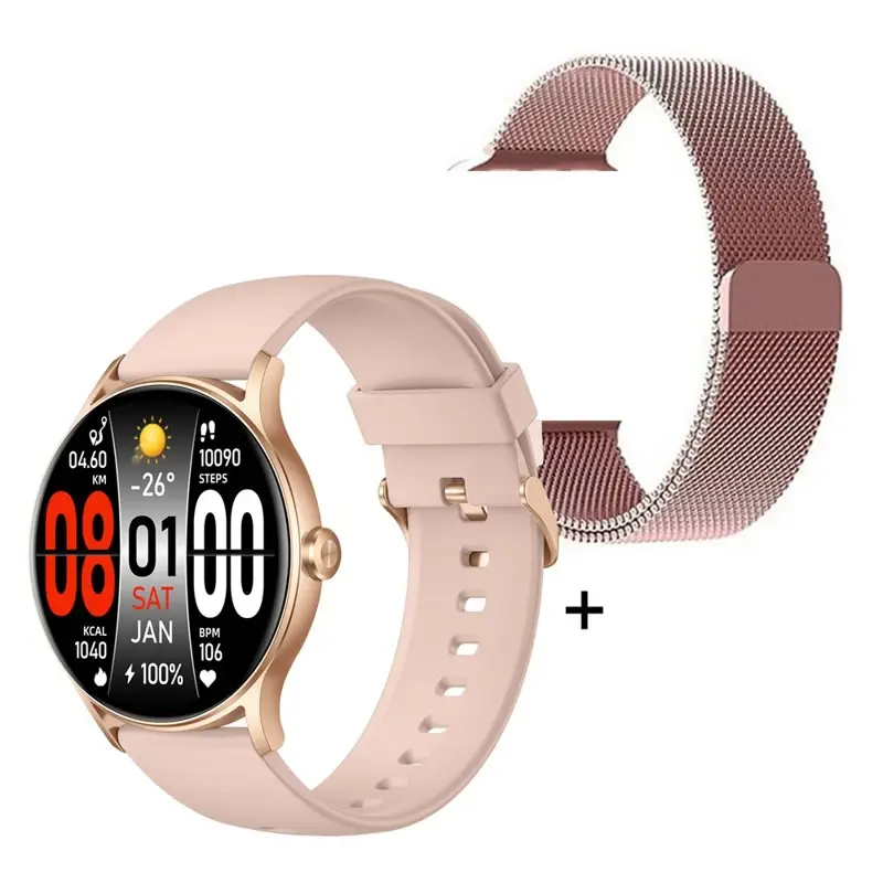 Tienda Oficial Nictom-El SmartWatch NT17 cuenta con aplicación de modo deportivo para correr, caminar, ciclismo, escalada, yoga, saltar a la cuerda, sentadillas. Además, tiene funciones de salud de frecuencia cardíaca, monitorización de sueño, podómetro, oxígeno en sangrey presión arterial. Llevalo con una malla extra metálica para lucirlo dónde quieras!.Características:Tamaño de Pantalla: 1,28?Resolución de pantalla: 240 x 240 pxTipo de Pantalla: TFT táctilBluetooth 5.0Compatible con Android 5.1 / iOS 9.0 y superiorResistente al agua: IP68Tipo de Alerta: VibraciónMétodo de carga: Carga magnéticaAplicación de modo deportivo para correr, caminar, ciclismo, escalada, yoga, saltar a la cuerda, sentadillasFunciones de salud: frecuencia cardíaca, monitorización de sueño, podómetro, oxígeno en sangre, presión arterialControl de música vía BluetoothBúsqueda de teléfono móvilReloj: 5 esferas integradasCompatible con pulsador de dialCronómetroRecordatorio de sedentarismoModo No MolestarDespertadorAgitar para: tomar fotos, clima, linternaEnvío de información por Bluetooth: chat, noticias, Twitter, FacebookAdmite varios idiomasBatería: 200 mAH / Hasta 5 días BTH ON / Hasta 30 días en Stand ByIncluye: reloj, cable de carga, manual de usuarioMalla Metal de RegaloColor Rosa