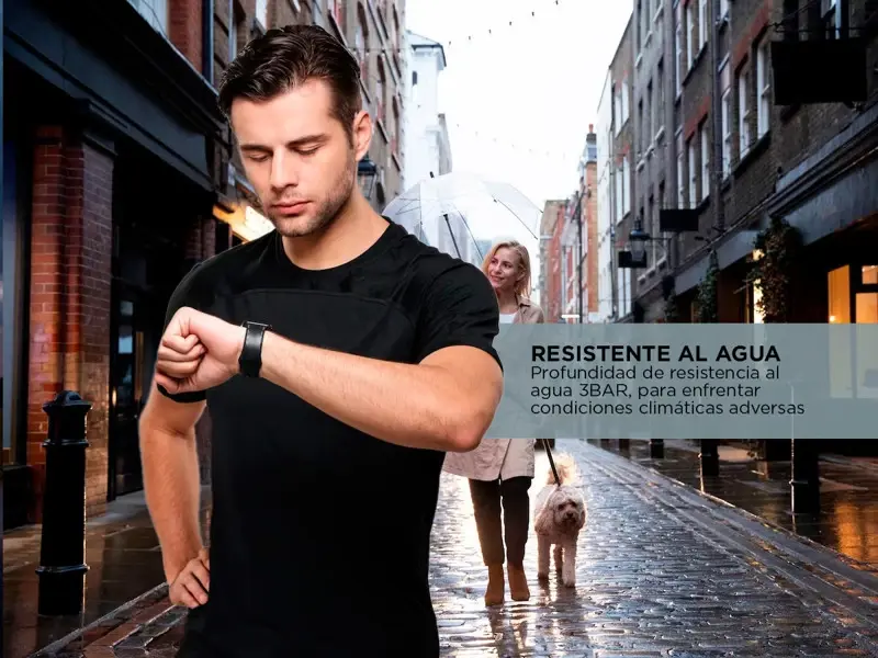 La resistencia al agua de hasta 3 bares te permite usarlo en situaciones húmedas sin preocupaciones, ya sea bajo la lluvia o mientras practicas deportes acuáticos. Su diseño moderno y sofisticado se adapta a cualquier ocasión, realzando tu estilo en cada momento.