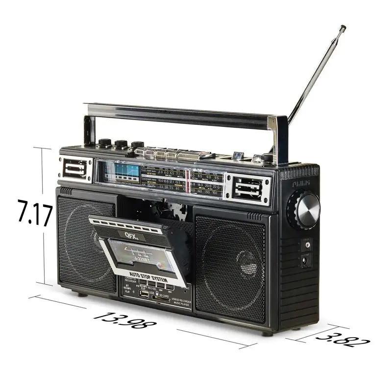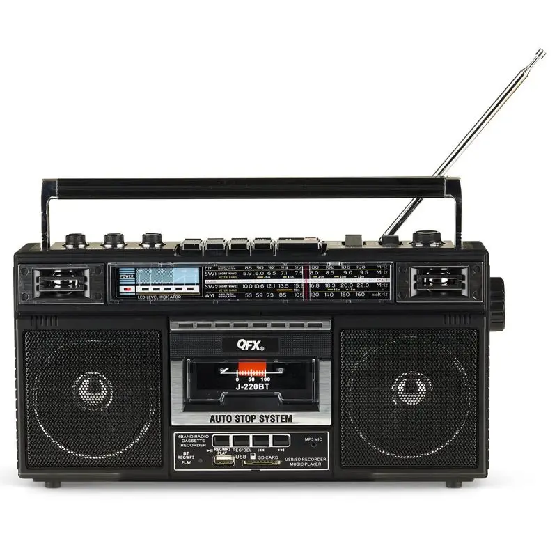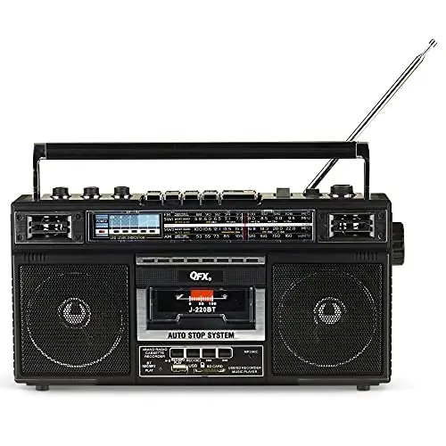 La vieja escuela se encuentra con la nueva escuela con el QFX J-220BT ReRun X AM/FM/Shortwave Cassette Player. ¡Saca esas cintas de cassette de la escuela secundaria y las baterías 4D (se venden por separado) durante horas de ritmos reducidos y nostalgia pesada de graves sobre la marcha! ¿Las cintas comienzan a tener ese silbido persistente? El ReRun convierte sus pistas de cassette favoritas a MP3 en almacenamiento USB o tarjeta SD (se vende por separado), preservando su extensa colección de casetes para las generaciones venideras.
