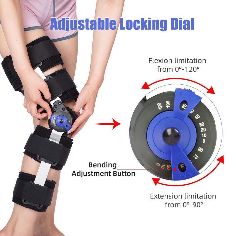 Rodillera con bisagras ROM: La ROM es adecuada para la recuperación postoperatoria y el tratamiento de la artritis, el desgarro del menisco, el LCA, el MCL, el LCL, la tendinitis, la inestabilidad artificial de la rodilla, etc. Estabiliza y sostiene la articulación de la rodilla, lo que reduce el riesgo de volver a lesionarse. Dial de bloqueo ajustable de 0°-- 120°: El dial de bloqueo ajustable se puede ajustar entre 0° y 120°, lo que puede proporcionar un soporte y una fijación personalizados para promover la rehabilitación. TAMAÑOS AJUSTABLES: la longitud del soporte retráctil es de 19.29 pulgadas, la circunferencia máxima del muslo es de 25.5 pulgadas (por encima de la rodilla 9.05 pulgadas), la circunferencia máxima de la pantorrilla es de 15.5 pulgadas (por debajo de la rodilla 10.24 pulgadas), se adapta a la mayoría de los tamaños de piernas de hombres y mujeres, sostiene cómodamente la pierna izquierda o derecha. Ligero y resistente: el soporte ROM está hecho de aluminio de aviación, que no solo es ligero, sino que también tiene un fuerte soporte especial. Además de garantizar el efecto fijo de tu recuperación, no afecta a las actividades diarias. Suave y cómodo: la almohadilla antideslizante y el cinturón de cierre ajustable de tejido médico transpirable se utilizan para mantener todo el día sin sensación de congestión ni deslizamiento.