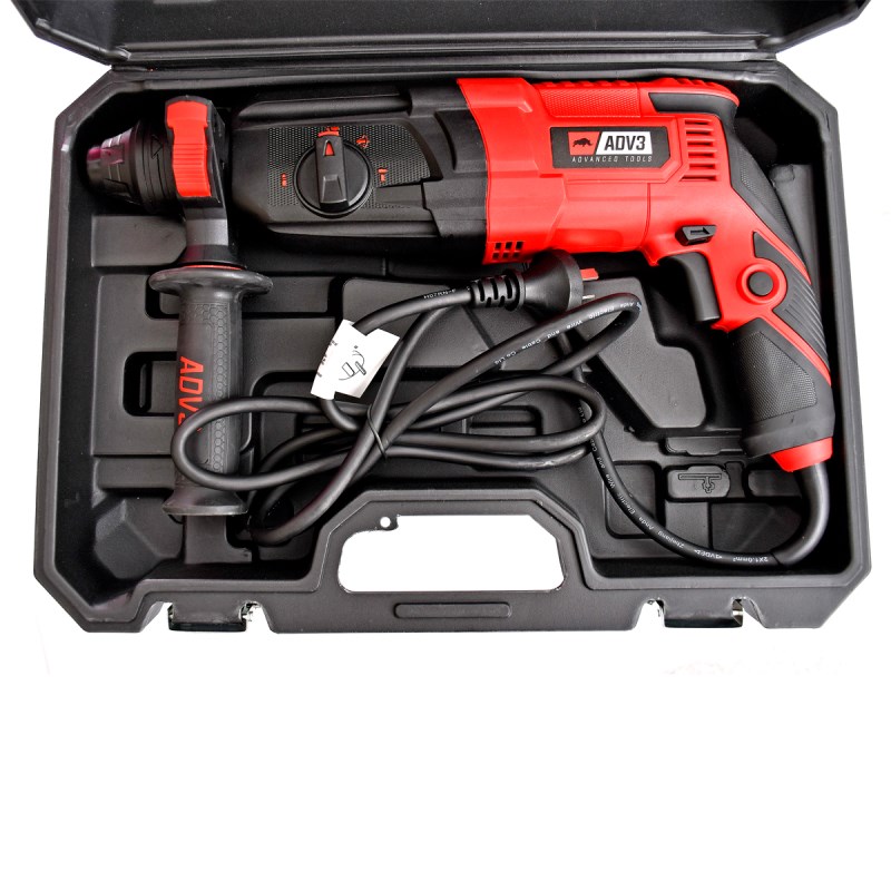 ROTOMARTILLO RT0800 800W ADV3 ROTOMARTILLO DE 800 W CON ACCESORIOS El Rotomartillo ADV3 es una herramientapensada para trabajos intensivos, diseñada para perforar materiales y superficies de alta resistencia. Equipado con un sistema deimpacto por pistones que permite cincelar, taladrar y perforar estructuras resistentes utilizando el accesorio adecuado para cada tarea