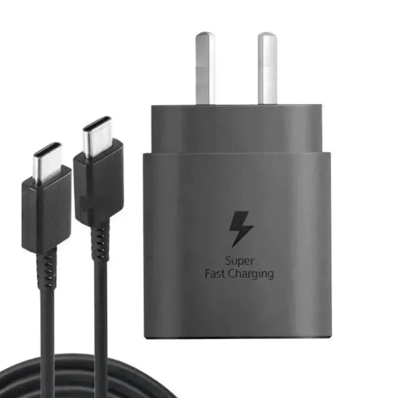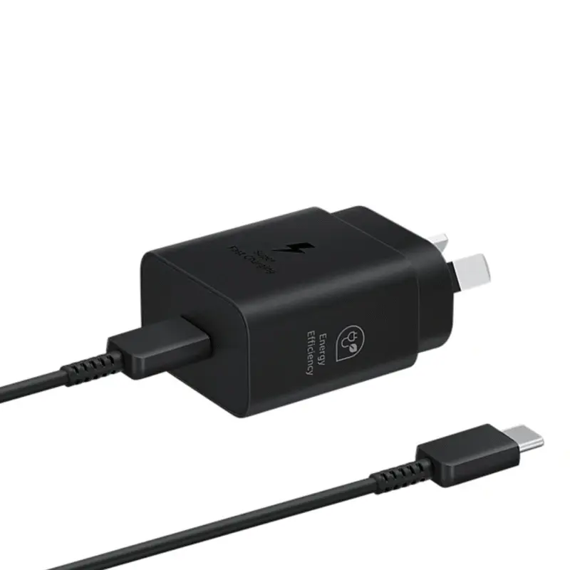 Samsung Cargador Ultra Fast Charge 45W Negro con Cable Disfrutá de la flexibilidad del puerto USB Tipo C Aprovechá la flexibilidad de los últimos puertos USB PD tipo C estándar. Alterná los tipos de cable para cargar varios dispositivos móviles y, con USB tipo C en ambos extremos, nunca te vas a preocupar por la dirección del cable. No vas a necesitar cambiar el adaptador enchufado en el toma corriente de la pared ¡Simplemente conectalo! Garantía 6 meses